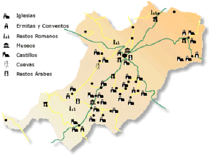 Desde tiempos inmemoriales, la creatividad e inteligencia humanas ha tenido en la arquitectura sus máximos exponentes. Los hombres y mujeres de la Serranía han construido todo tipo de infraestructuras para cobijarse (cuevas, casas, palacios...), para defenderse (castillos, murallas...), para producir alimentos (granjas, molinos...), para dominar el agua (acequias, pozos, acueductos...), para llenar su ocio (baños, teatros...) o para procesar sus creencias y religiones (mezquitas, iglesias, imágenes, retablos,...). |