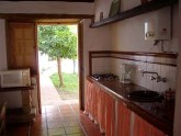 y luego la puerta de la cocina y el patio dan a una zona amplia de